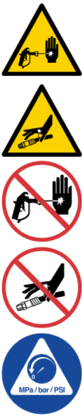 • При прекращении распыления и перед очисткой, проверкой или обслуживанием оборудования должна выполняться Процедура сброса давления.